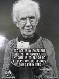 I remember reading about Maggie Kuhn and the Gray Panther movement. She redefined activism for elders, no question. There is much to consider in her advice above for this era in our nation and world. May I, may we, be inspired by Maggie Kuhn's example and counsel to not be silent, to speak up, even if our voice shakes.