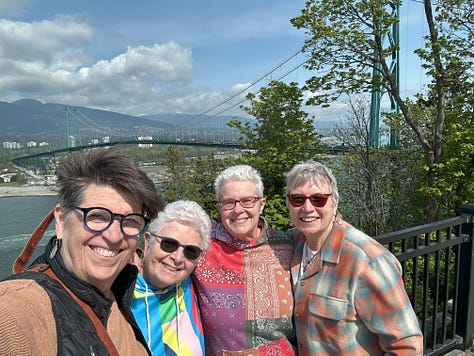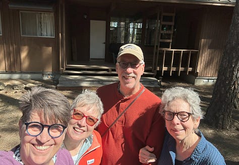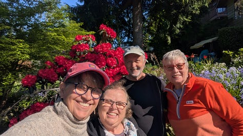 I love the story of Robin's neighbor and this statement about her table of free vegetables and flowers by the road -- "The currency of exchange is the secret smiles on both faces." I love the photos of you, Pat and Jean, underneath the reflection with friends -- and all those smiling faces.